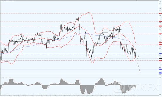 今日英镑主要保持顺势看空的思路为主,上方关注布林带中轨一线的压制力度,只要英镑稳定运行于布林带中轨下方,则将以顺势看空为主,下方关注1.3742一线的支撑力度,一旦力度跌破1.3742一线,届时则将打开进一步的下行空间。