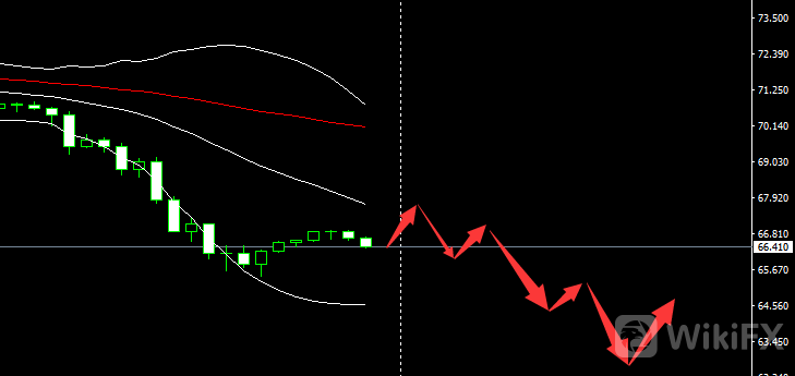 技术点评:周一原油暴跌至66美元附近,日线连续四天下跌,创下四周低点,市场空头情绪释放,今日需警惕市场报复性反弹,目前油价在66.80美元附近震荡,关注67美元附近压力。小时图,油价连续下跌破位,布林带开口向下,均线系统空头排列,布林中轨在67.50美元附近有较强压力,上轨压力在70.00附近,下轨支撑在64.60附近,MACD指标,下跌动能达到高峰值,有空头加油之势,今日原油有望震荡下跌,关注66美元支撑,保持高位做空的思路。