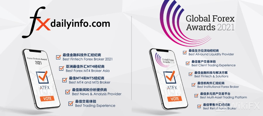 在此之前,ATFX在Forex Brokers Award 2021(2021差价合约经纪商大奖)以及Global Forex Awards 2021(2021全球差价合约大奖)评选上,凭借自己的优异的成绩更是荣获多达11项奖项的提名。