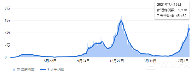 欧洲杯过后,聚集社交的后遗症也显现出来,疫情确诊病例一飞冲天。截至7月19日,英国单日确诊病例早已超过3万例,逼近年初的疫情高峰,最近的单日新增感染排名也高居世界第一。