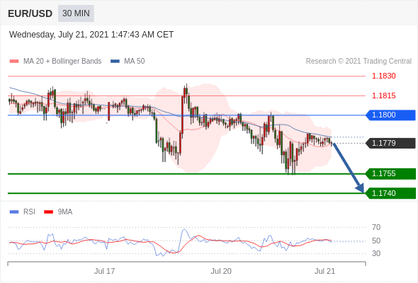 交易策略:在1.1800之下,看跌,目标价位为1.1755,然后为1.1740。