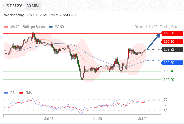 交易策略:在109.60之上,看涨,目标价位为110.10,然后为110.30。