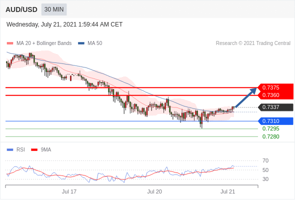 交易策略:在0.7310之上,看涨,目标价位为0.7360,然后为0.7375。