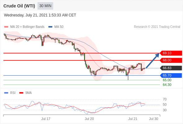 交易策略:在65.70之上,看涨,目标价位为68.00,然后为69.10。