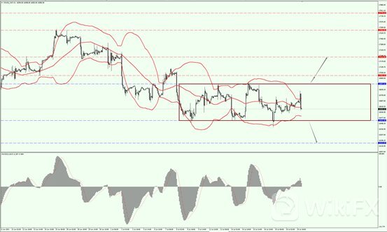道指昨日大幅反弹,今日上方依次关注34673和34870两个位置的压制力度,下方关注34477和34168两个位置的支撑力度,目前布林带上下轨已呈现收敛之势,因此,今日道指偏区间宽幅震荡为主。