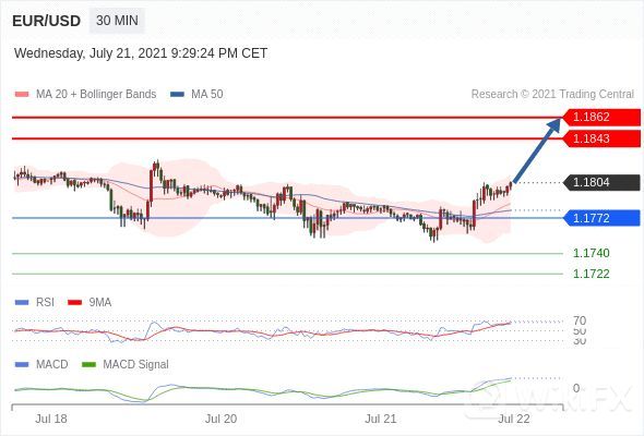 RSI技术指标超过50。MACD技术指标呈现看多状态并 处在其信号线的上方。此外,价位处在其20天及50天移动平均线上方 ( 当前是 1.1785 和 1.1779 )。