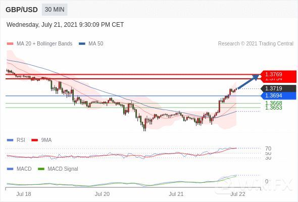 看涨,当 1.3694 为支撑位。