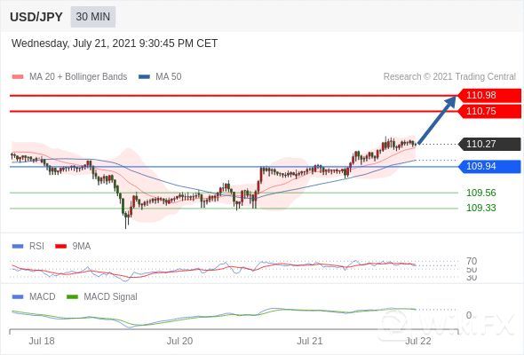 看涨,当 109.94 为支撑位,目标定在110.98。