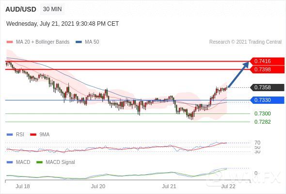 看涨,当 0.7330 为支撑位。