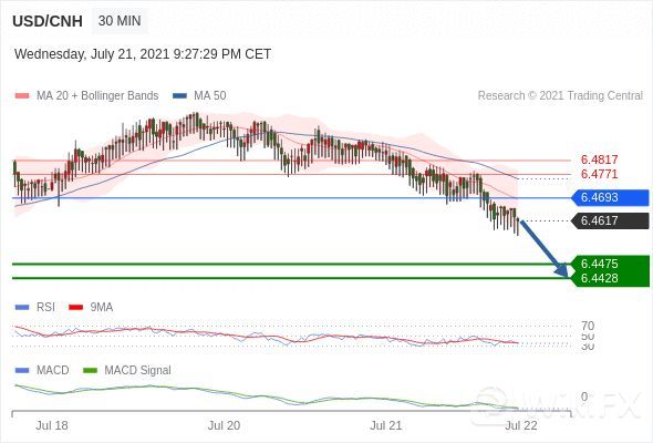 如突破 6.4693 ,USD/CNH 目标方向为 6.4771 和 6.4817 。