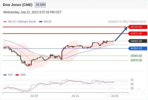 在 34360.00 之上,看涨,