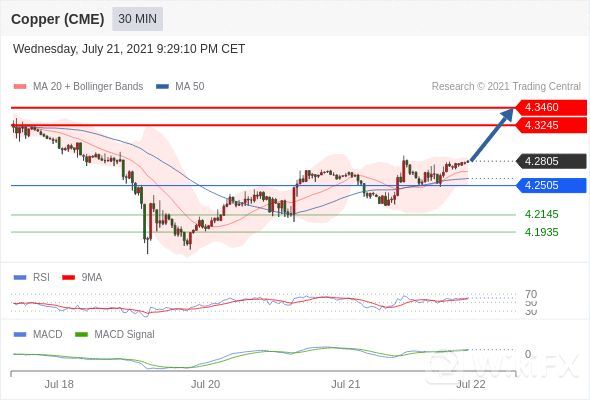 看涨,当 4.2505 为支撑位。