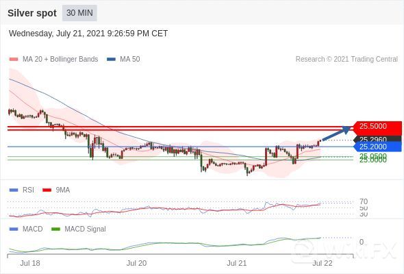 RSI技术指标超过50。MACD技术指标呈现看多状态并 处在其信号线的上方。此外,价位高于其20个时期及50个时期移动平均线 ( 分别位于 25.1610 和 25.0451 )。