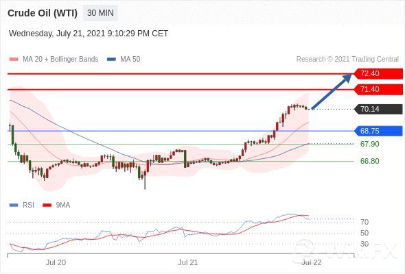 随后的阻力位是71.40,然后为72.40。