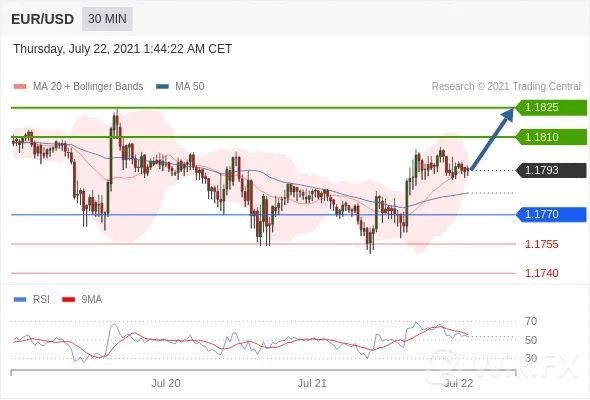 交易策略:在1.1770之上,看涨,目标价位为1.1810,然后为1.1825。