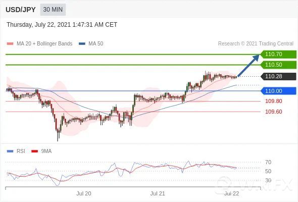 交易策略:在110.00之上,看涨,目标价位为110.50,然后为110.70。