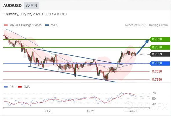 交易策略:在0.7330之上,看涨,目标价位为0.7370,然后为0.7390。