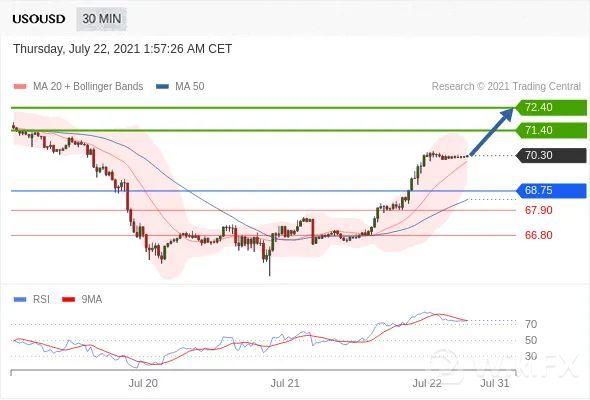 交易策略:在68.75之上,看涨,目标价位为71.40,然后为72.40。
