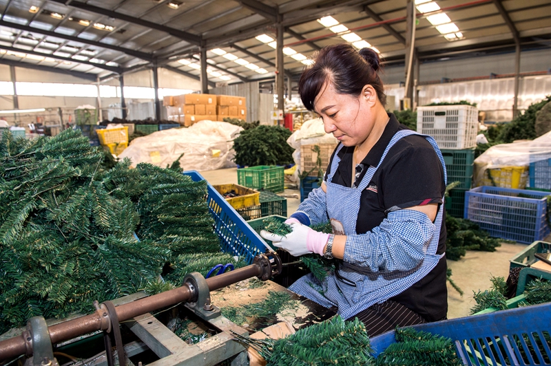 今年以来,农行河北文安县支行广泛开展“走进园区为企业送服务”活动,通过农行“小微e贷”等系列产品,为辖区小微企业等实体经济提供金融“血液”。截至6月末,该行企业类贷款增加1.1亿元,涉农贷款增加1.5亿元。图为该行支持的河北楚竹企业工人正在生产外贸订单产品。 本报记者 刘志良 摄