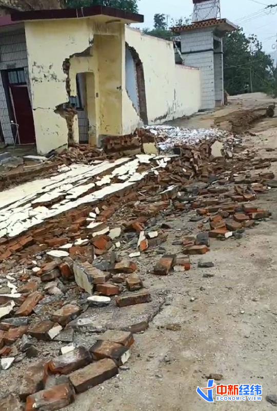 包括我家在内,村里河边住户一共有30多户,目前有部分房屋倒塌,也有一部分虽然没塌,但由于土墙滑坡,房顶和院子里积了好多泥土。一些人家出现了房顶积水的情况,村里正在组织人进行房顶排水,比如添加管道等。