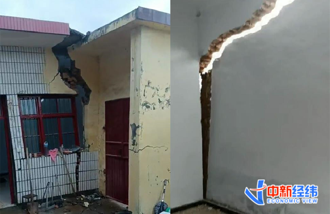 韩沟村内部分土墙滑坡,房屋受到影响。受访者供图