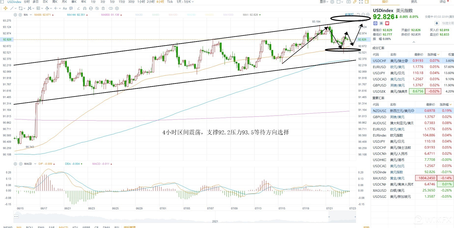 欧央行利率决议符合市场预期,保持继续宽松,推动美元反弹,不过美元指数依然未能突破前高,只是在箱体之内波动,基本面上避险情绪消退,短期美元突破的概率不大,维持震荡对待,金价则是区间震荡,没有明确的方向选择,等待突破,美原油方面延续涨势,短期收复大部分跌幅,因市场预期,经济复苏,需求改善,短期支撑油价走高,不过短期新高的可能性也不大,只是区间震荡而已,切勿追涨杀跌,技术层面上美元指数93.5成为重要压力,下方支撑92.2