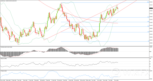 7月22日美元指数涨0.05%至92.83扳回盘中0.3%跌幅,反映了欧元未能守住由欧洲央行会后声明引发的涨幅;欧洲央行此前表示,在实现通胀目标之前,预计利率将保持在当前或更低的水平。美国公布的上周初请失业金人数高于预期,令市场担忧美国经济能否从疫情中复苏,无论是美国市场、全球宏观经济、对新冠疫情的担忧,还是政治风险,都仍存在很多不确定性。