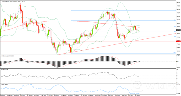 现货黄金周四小幅上涨,收报1806.92美元/盎司,美债收益率回落,抵消美元走强的影响,部分恢复了黄金作为避险资产的吸引力。指标美债收益率在触及近一周高位后回落,股市亦缩减盘初的涨幅,因数据显示美国初请失业金人数意外升至两个月高位,令部分资金流入黄金,抑制风险人气。欧洲央行承诺在更长时间内将利率维持在纪录低位,亦支撑金价。