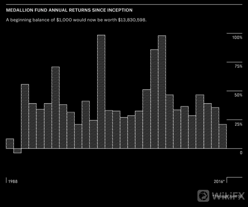 数据表明,文艺复兴是很多对冲基金中薪酬最高的机构之一。然而,值得注意的是,工资并不是大多数人为西蒙斯工作的原因。真正的吸引力是他们向大奖章基金投资的机会,该基金仅对大约300名员工开放,其中约 90 名是博士,以及少数与公司有着深厚联系的人。自1988年成立以来,每年的回报率约为40%。
