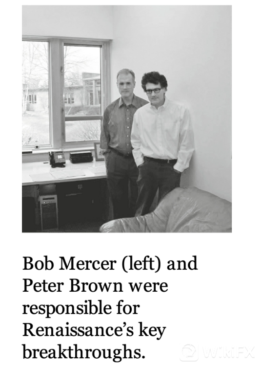 复兴科技又陆续引进了世界顶级HMM(隐马尔科夫模型)专家-剑桥大学的数学博士Nick Patterson,以及IBM公司Watson实验室的语音识别专家PeterBrown(自然语言处理和机器翻译),Robert Mercer(语音识别),S. Della Pietra & V. Della Pietra,(最大熵迭代算法的发明人)。