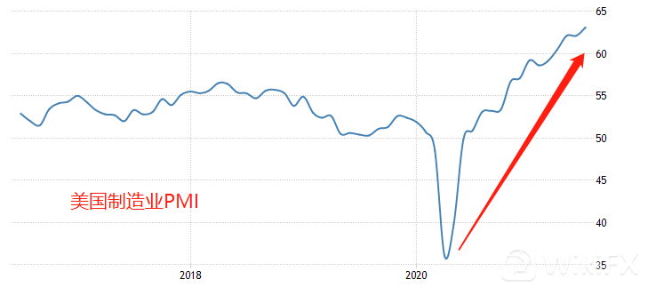 从上图可以看出,美国制造业PMI曲线处于上行状态,6月份最新数值为63.1,高于荣枯线水平。制造业的恢复将会带动大宗商品价格上涨,国际铜也不例外。另外,美国的PPI最新值为7.3%,增幅远超市场预期,且PPI曲线上涨迅速,表明市场对大宗商品的需求极为旺盛。