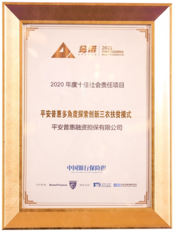 近日,由《中国银行保险报》主办的“金诺·以责任之心 铸品牌价值2021中国金融品牌峰会暨金融企业社会责任大会”在苏州举行。本次峰会关注后疫情时代金融企业如何更好地践行社会责任,服务国家和社会所需,塑造品牌价值。平安普惠凭借多角度探索创新三农扶贫模式获“2020年度十佳社会责任项目”称号。
