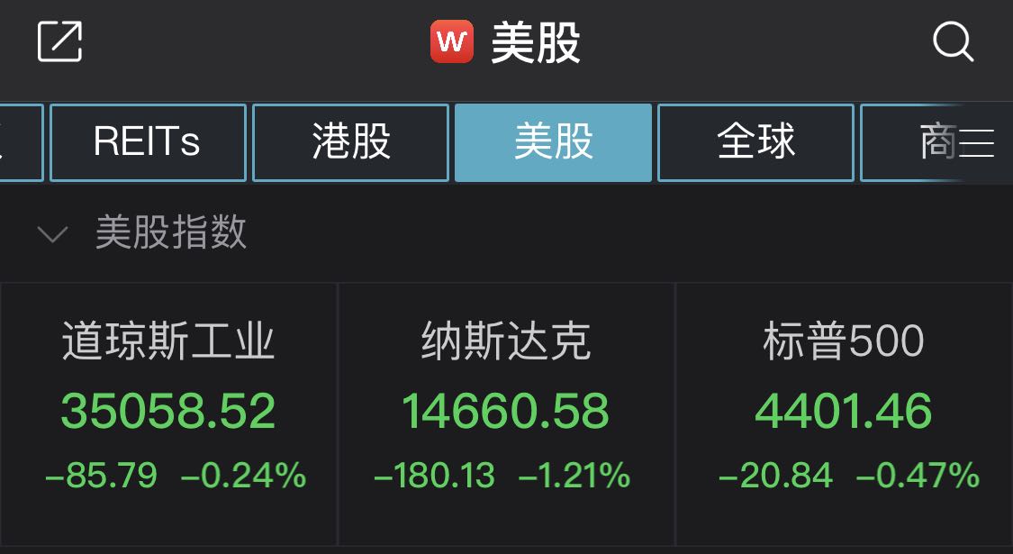 截至收盘,道指收跌85.79点,跌幅为0.24%,报35058.52点;纳指收跌180.13点,报14660.58点,跌幅为1.21%;标普500指数收跌20.84点,报4401.46点,涨幅为0.47%。