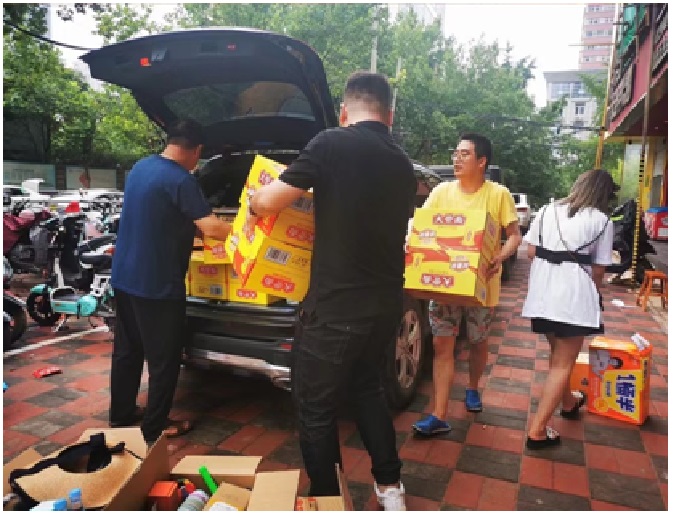 受暴雨影响,河南多地出现严重的内涝及洪水,平安人寿河南分公司郑州第十五营业区的周晓蕾团队在7月22日自发组织紧急采购救灾物资,捐赠给中牟阜外医院,并于7月23日前往郑州市二七区樱桃沟开发管理委员会进行捐赠。两天来,周晓蕾团队共捐赠救灾物资价值达4万元,图为平安人寿河南分公司代理人至中牟阜外医院及樱桃沟捐赠救灾物资。 范斌华 摄