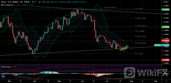 In terms of technical analysis, the EURUSD has been consolidating in a range between $1.1845 and $1.1752 for roughly ten days. A breakout from this range will indicate the next move for the EURUSD.
