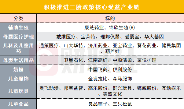 财联社梳理积极推进生育政策核心受益产业链个股如下: