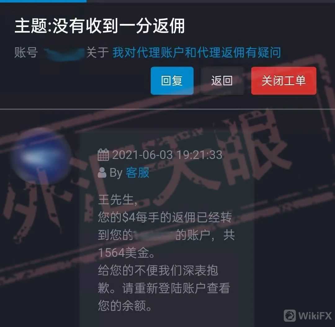 据外汇天眼的某用户投诉反馈,自己在某外汇平台开了代理,并且与平台的相关人员商量好了关于佣金的返现问题。