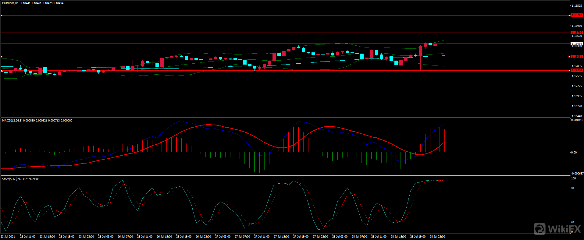 日内下方支撑1.1800-10,1.1770,上方阻力1.1870-80,1.1920-30,1.1800-10为1H多空分水岭,保持在此上方短线多头占优。