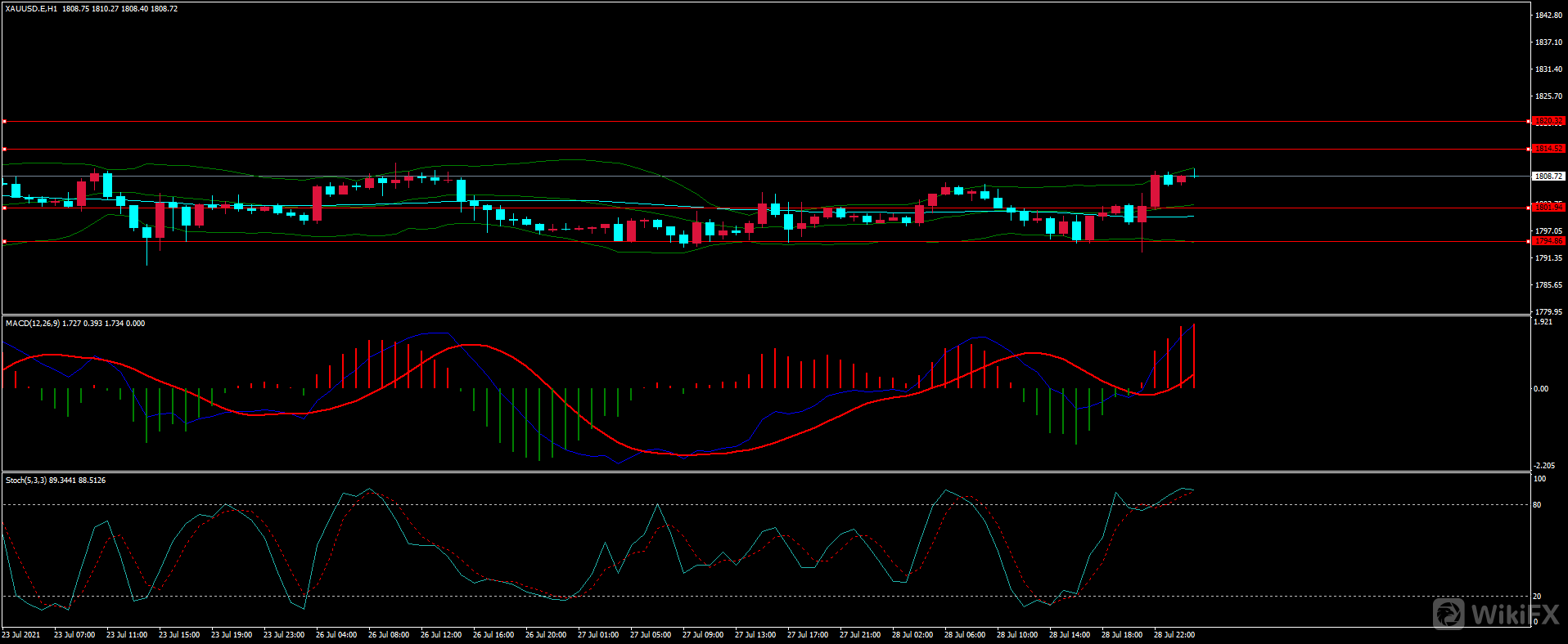 日内下方支撑1801-02,1794-95,上方阻力1814-15,1820-21,1801-02为30M多空分水岭,在没有失守之前短线多头占优。