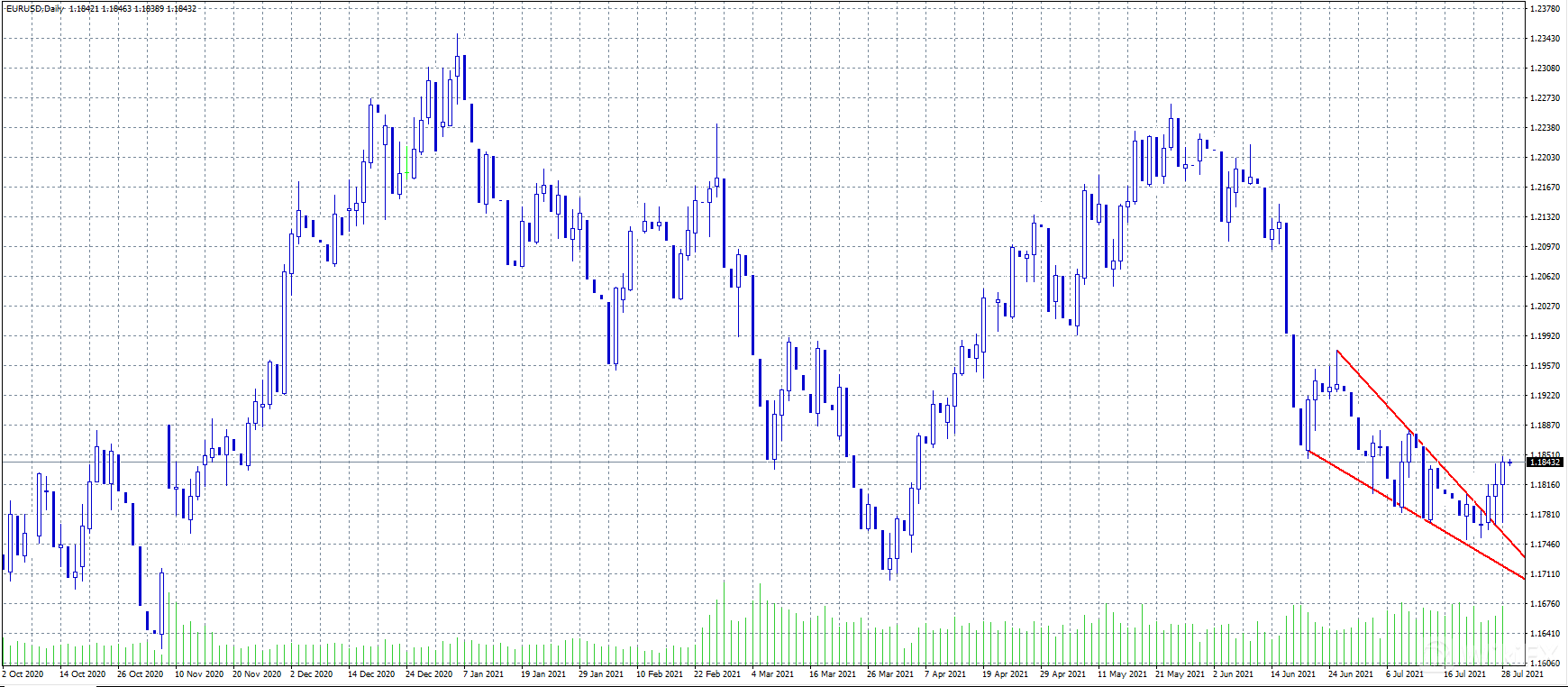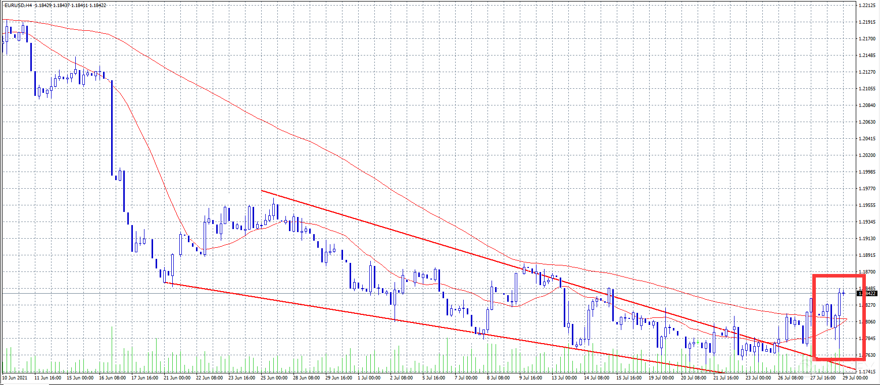 美联储主席鲍威尔美国时段午盘发表讲话,维持利率和金融支持计划不变,符合预期。但美联储声明较预期更为乐观,原因是美联储称“经济已朝着目标取得进展”。欧元/美元上半段交易中整理于1.1800附近,美元全线走弱,风险资产回稳,如果汇价突破1.1845,初始目标是7月12日高点1.1884,空头回补引发可能会使得汇价升至1.1948。