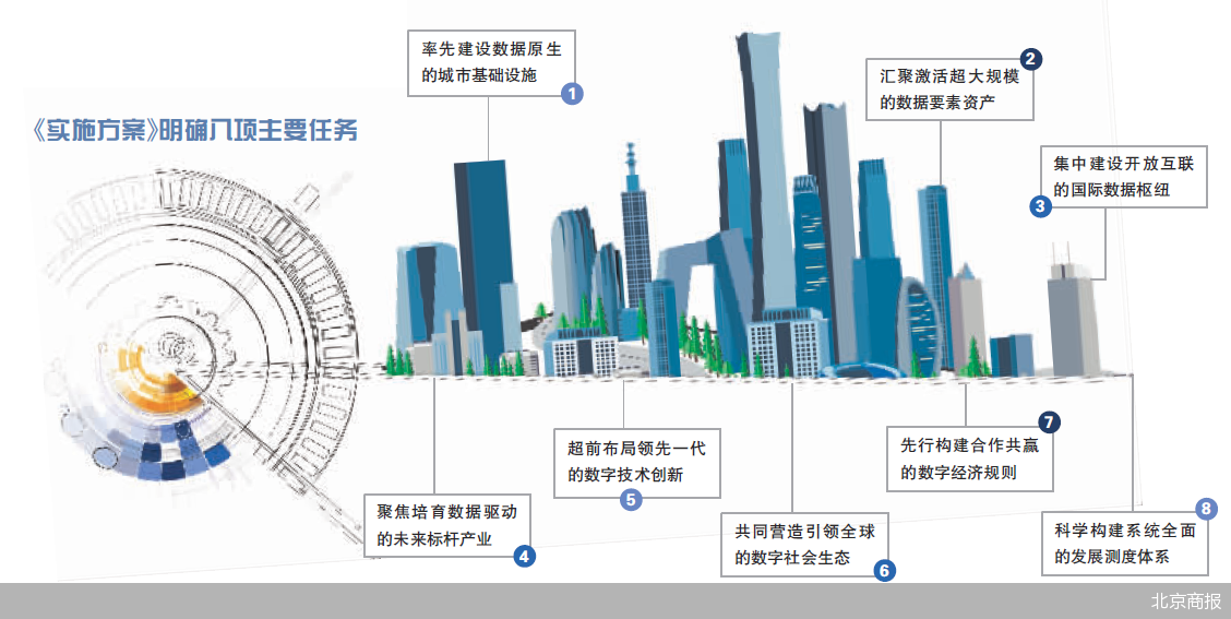 全球数字经济标杆城市是什么样的?北京在哪些方面能够成为标杆?《实施方案》给出了明确的答案:通过十年左右的持续努力,把北京打造成为引领全球数字经济发展的“六个高地”:城市数字智能转型示范高地、国际数据要素配置枢纽高地、新兴数字产业孵化引领高地、全球数字技术创新策源高地、数字治理中国方案服务高地、数字经济对外合作开放高地。