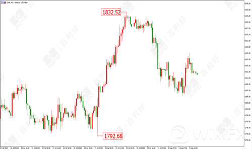 黄金方面:黄金昨日(8月2日)亚欧盘时段向下回落,晚间最低触及1805美元的位置,随后小幅反弹,并不能构成反转。