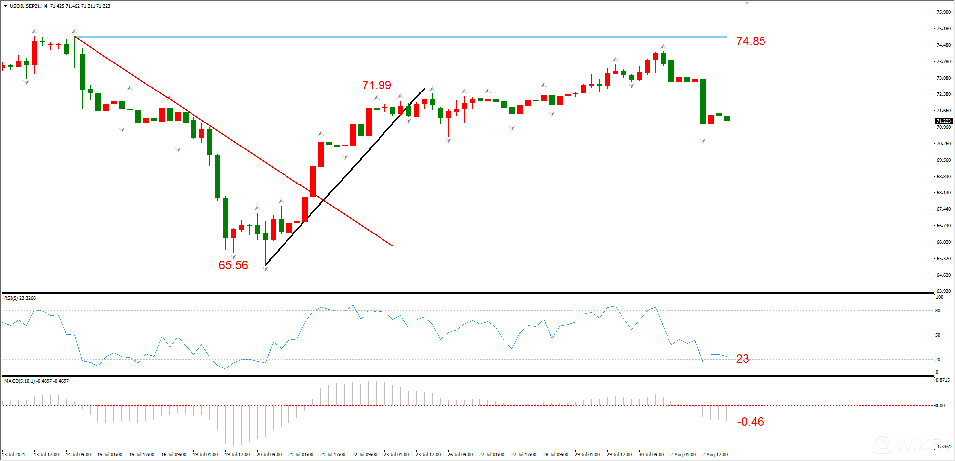图3,USOIL 2021年9月合约,08月03日 H4周期-ATFX