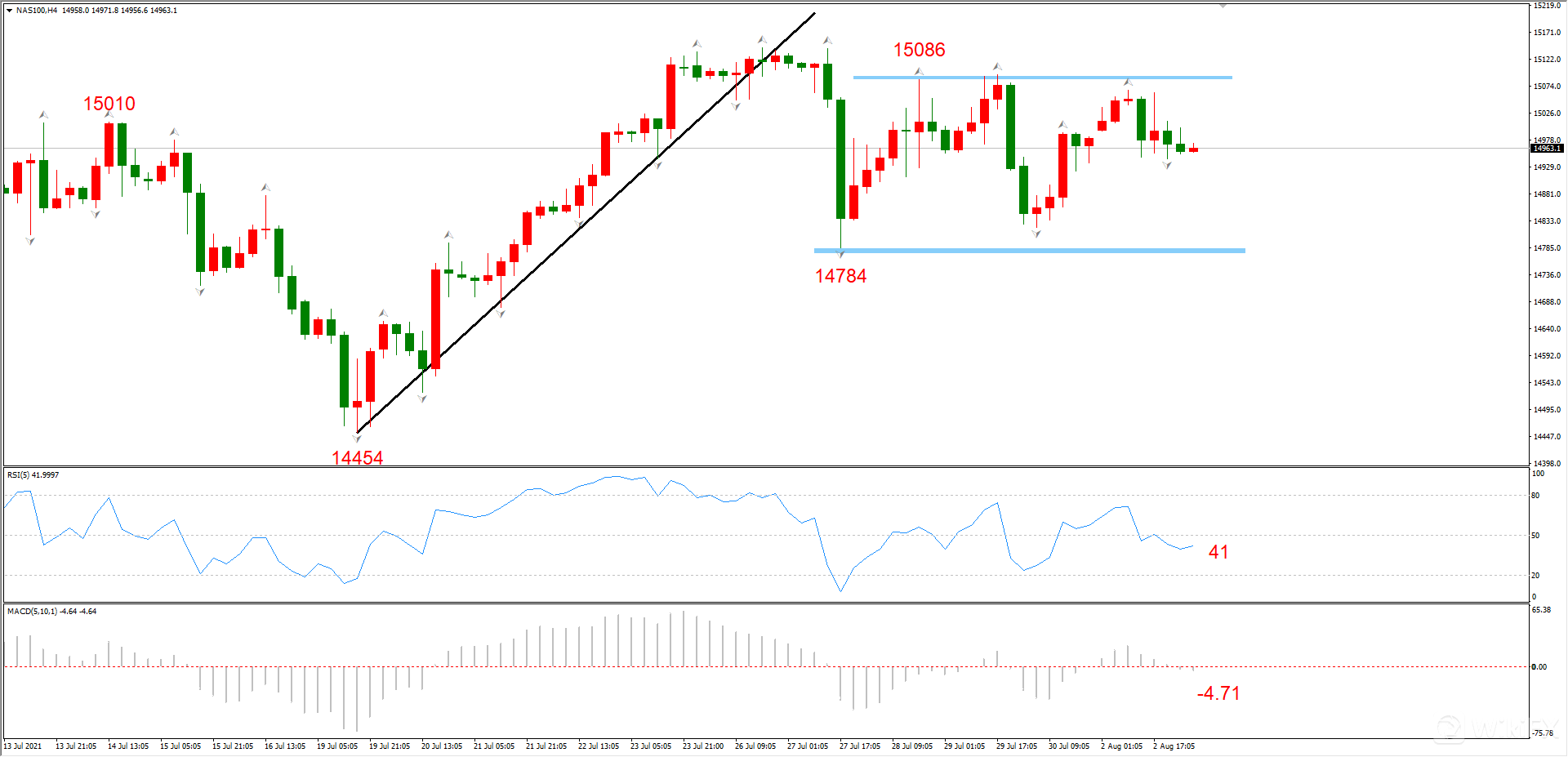结构上,区间震荡特征越来越明显,上方阻力15086,下方支撑14787,目前处于上轨至下轨的空头波段。