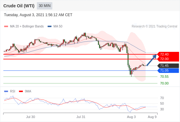 交易策略:在71.05之上,看涨,目标价位为72.00,然后为72.40。