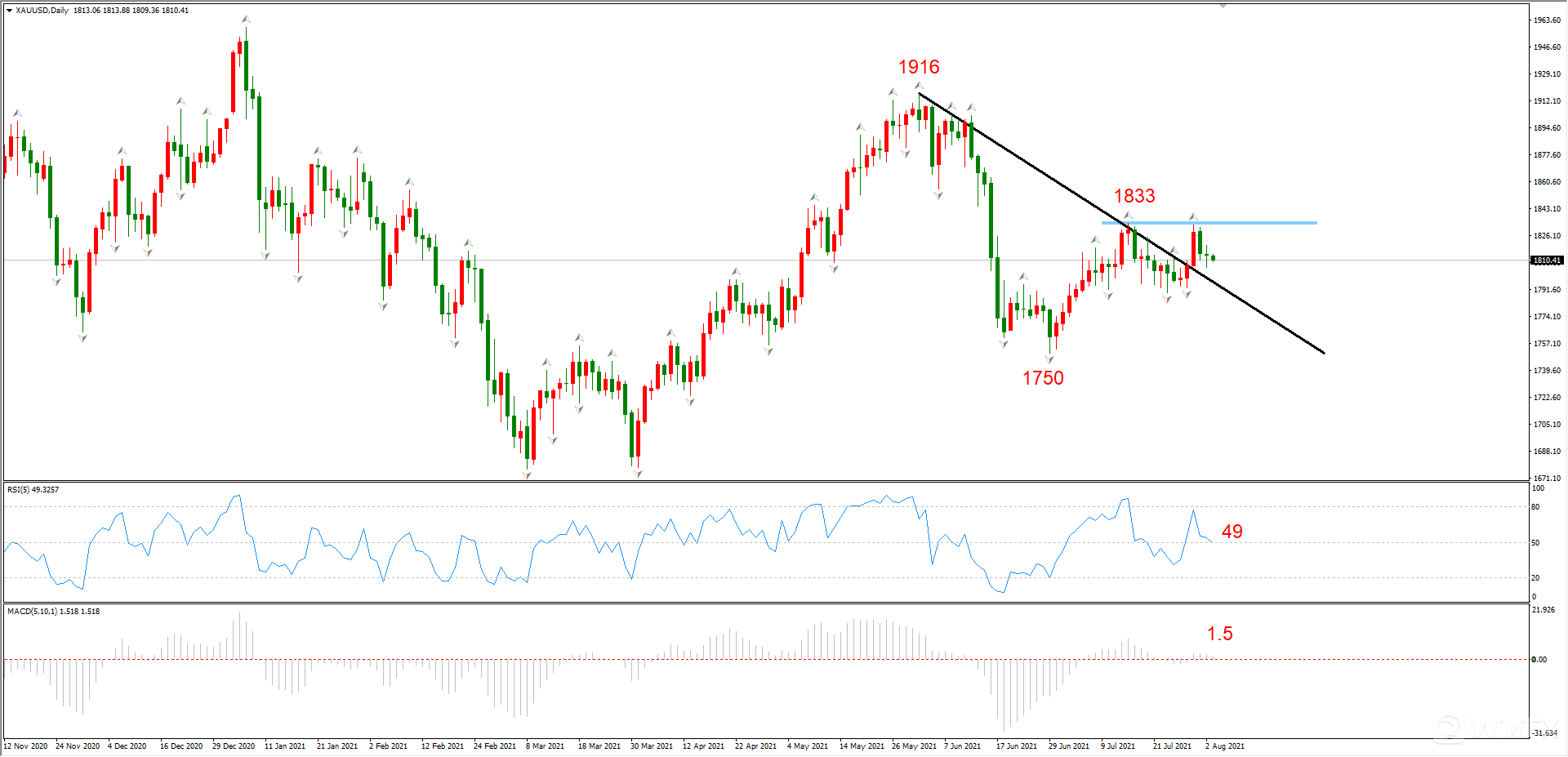 图2,XAUUSD 08月03日 日线级别-ATFX