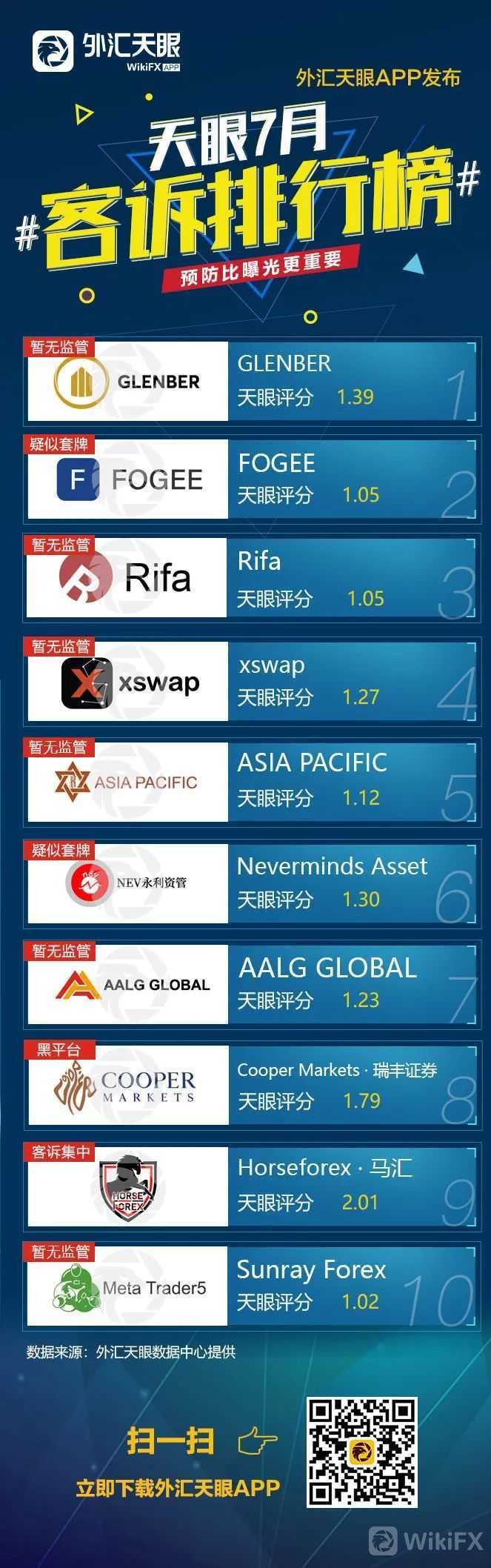 不知不觉8月份就到了,2021年已经过去了一半多的日子,不知各位交易者这几个月在汇圈的交易战况如何?无论是亏损还是盈利,一定不要选择外汇黑平台!例如没有监管牌照,或者是风评欠佳的外汇平台都不该成为投资交易的选择。外汇天眼7月客诉榜单已出炉,快来看看哪些外汇平台是黑平台,切记要远离!
