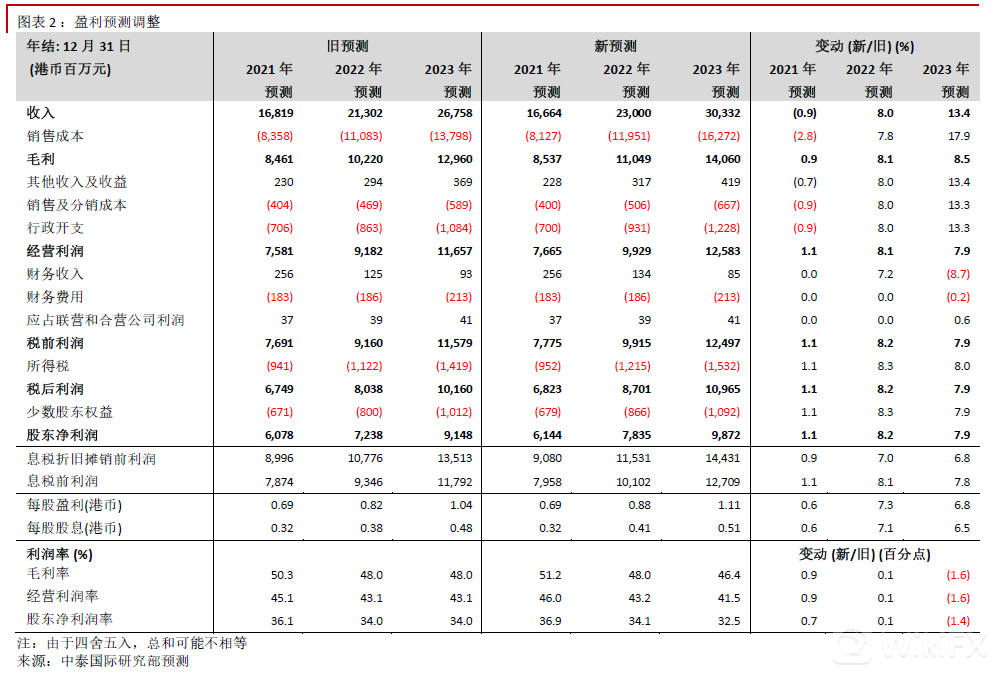 考虑到理想的中期业务及明年产能增长加快,我们分别上调2021-2023年股东净利润预测1.1%、8.2%、7.9%(见图表2)。