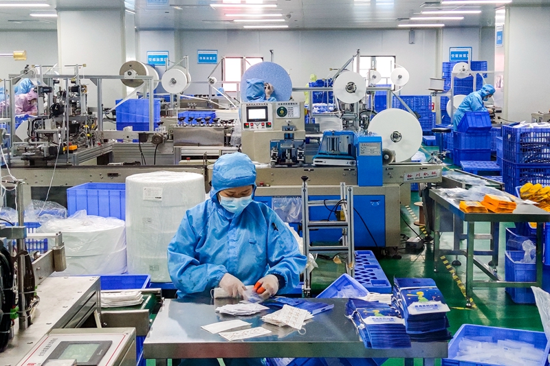 面对近期疫情防控形势,中行河南郑州文化支行积极落实疫情防控金融政策,对防疫物资生产和销售企业开通绿色通道优先评估,通过线上向相关企业提供纯信用、无抵押担保、随借随还的“中银企E贷”金融产品,助力企业加速生产防疫物资。图为该行支持的口罩生产企业在生产中。
