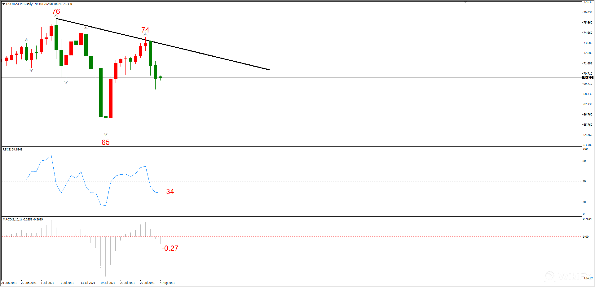图3,USOIL 2021年9月合约,08月04日 日线周期-ATFX